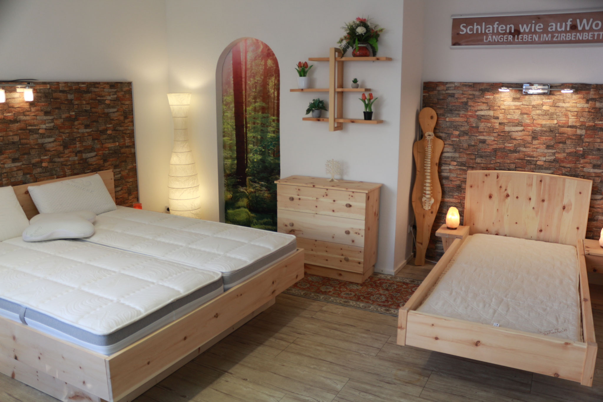 Entdecken Sie unser sorgfältig ausgewähltes Sortiment an hochwertigen Schlafsystemen, Zirbenbetten, Schlafrosten, Matratzen, ergonomischen Kissen nachhaltigen Bettwaren, Vollholzmöbeln, Schaf-